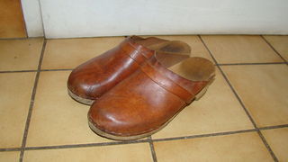 Paire de sabots suédois vintage - homme T.42 en cuir et bois Ils datent de la fin des années 1970 Taille 42 En bon état Quelques traces d'usage A venir chercher sur