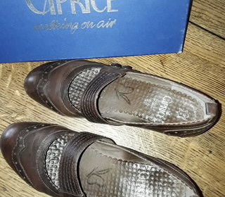 Belle affaire a saisir escarpins de marque caprice marron talon compensé de 4 cm pointure de 5,5 qui correspond a 38,5 si envoi 6€ supplémentaire sera demandé par mon
