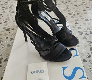 Escarpins en très bon état, hauteur talon 11 cm, en satin et strass, portés pour une seule occasion, achetés 179€. Il y a aussi des talons de rechange.