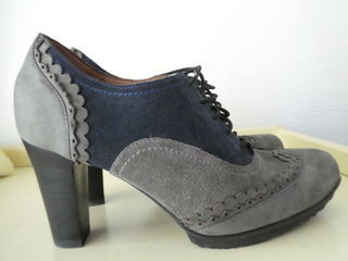 bottines en cuir gris, bicolores, marque MAMzelle. Portées 3 fois, en très bon état. Pointure 38, hauteur talons 7 cm