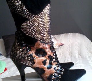 MARQUE METALIKA EN DAIM. HAUTEUR TALON 13.5CM AVEC PATIN A L'AVANT DE 3 CM. TRES CLASSE ET GLAMOUR!!!! POINTURE 35