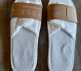 Chaussons éologiques, de la marque originale ADA, de couleur blanche, en 100 % fibres naturelles, en 100 % sans plastique, semelle en 100 % recyclée, pack imprimé avec de l'e