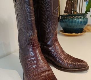 Santiags en Crocodile Californienne acheté aux Etats Unis, pointure 41/42 en parfaite état, très peu peux portées. Pas de paiement avec PayPal envoi possible à vos frais. STOP AR