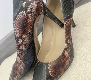 Escarpins à talons SAN MARINA Motif python noir/rouge très chic Véritable cuir (vera pelle) ? intérieur et extérieur Taille 37 Portés quelques fois, bon état général. Semelles