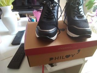 Vends tenis philov noire et blanche Avec liseré argenté Pointure 39 Jamais servie