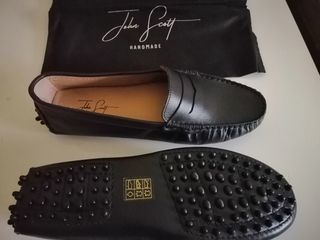 MOCASSINS NEUFS DEIRA John Scott EN CUIR BLEU MARINE POINTURE : 39
