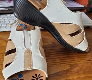 paire de sandales compensées de pointure 38. jamais portées! (visible sur la deuxième photo.) de marque "COMFORT" ce qui garantie un bon maintien du pied! il y a de plus un