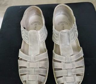 CHAUSSURES NU PIEDS TOUT CUIR GRISE à‰LASTIQUE D AISANCE SUR LES CÔTà‰S POUR LE CONFORT. JOLIS.FRAIS DE PORT A VOTRE CHARGE. URGENT.