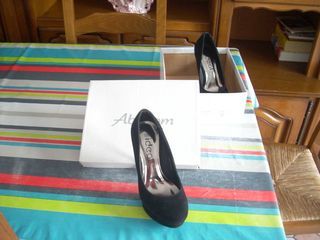 Ce sont des escarpins, en daims, noirs. Elles sont de tailles 38 femme. Elles sont propres et fonctionnelles. Leurs marque est idéal.