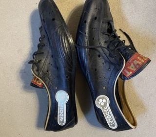 Chaussures cyclistes.Taille 42.Couleur noire. Avec calles pédales.Fabrication française. Bon état.