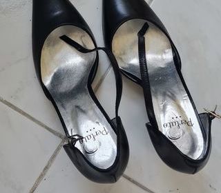Paire de chaussures noires de marque PERLATO jamais portées Taille 39 Talons aiguille Cuir noir Possibilité de remettre les articles à Pantin ou Nogent sur Marne