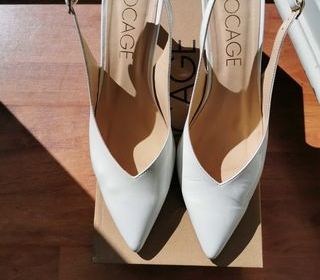 Très belle chaussure cuir vernis vendu dans leurs boîte. Trop haute pour moi. Payer 110 .