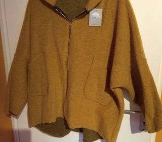Je vends une veste à capuche neuve avec étiquette Couleur moutarde et intérieur kaki 80 % laine et 20% polyester Taille 46 Prix d achat 35 euros Vendu 20 euros