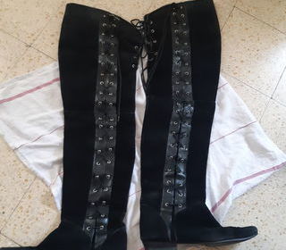 VEND cuissardes noire laçages, en nubuck daim T 37 laçage sur chaque coté de la cuissardes ainsi que sur l arrière, haut de la cuissardes (12 cm) hauteur totale de la cuissarde 6