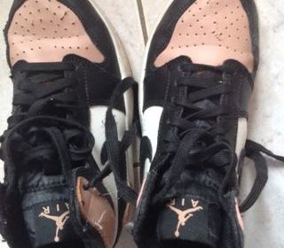 VERITABLE CHAUSSURES NIKE AIR FILLE ROSES ET NOIRES A LACETS UN PEU RAPEES SUR LE DEVANT TAILLE 34