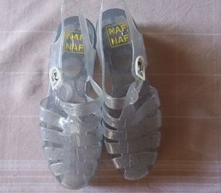 chaussures caoutchouc NAF NAF, pointure:38, couleur: cristal, semelle compensée: hauteur du talon: 4cm.