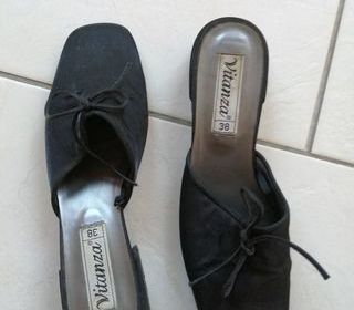 MULES NOIR SATIN 38 TALON CARRÉ 6 CM CONFORTABLES BON ÉTAT VENTE À DOMICILE