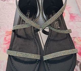 Bonjour, Je vous propose depuis mon armoire : * Sandale noire avec strass de la marque "Merry Scott" en taille 39. Neuve, juste essayée, maison non fumeur. Merci