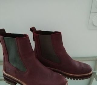 Bottines "Timberland " Couleur bordeaux Daim et semelle antidérapante Fermeture élastique sur le côté Talon de 4,5 cm
