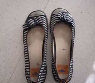 chaussures plate mie trois fois, en bon état couleur gris. rèyure noir