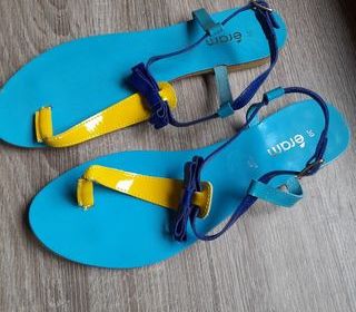 Nu-pieds jaunes et bleus , marque Eram , pointure 39 , cuir vernis
