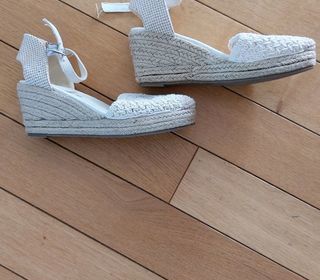 Sandales en trressage coton, semelle compensée. Pointure 38. Portées une seule fois