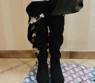 cuissardes pointure40,50 en daim noir brodé magnifique neuves jamais porté