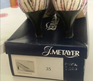 chaussures talons hauteur 6 cm crème neuves rayures différentes couleurs toile indienne pointure 35 marque J. METAYER