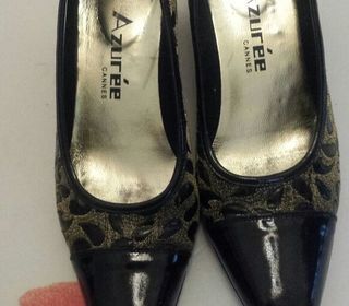 chaussures talons hauteur 5 cm noir dorée neuve marque Azurée Canne