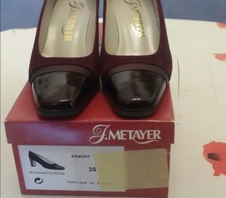 chaussures talons hauteur 6 cm Prune velours le haut verni noir. Neuves. made in France. marque : J. METAYER pointure 35