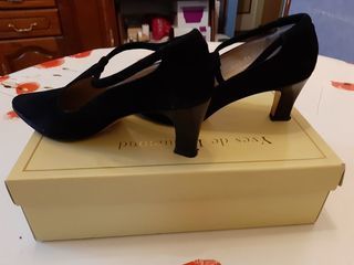 chaussures à talon hauteur de 6 cm dessus chevreau et velours Doublure et Semelle cuir pointure 34 semelle intérieure 21 cm marque YVES DE BEAUMOND PARIS