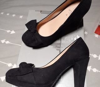 chaussure femme noir et daim avec un n?ud très bon état neuve taille 38 mise 2 fois