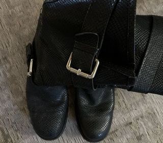 Taille 42,5 cuir noir super cuir, semelle caoutchou acheté 235 euros aux galeries lafayettes paris (voir ticket de caisse) vendu 125 euros utilisé 1 fois (erreur de taille) ve