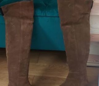 Vend bottes Gianni Crasto type genouillère/cavalière en daim, de taille 38 et de couleur Camel (marron). Achetées en 2023 au magasin Shoeshop à Paris pour 229€ comme vous pouvez