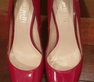 Chaussure à talons vernis satiné rouge 90euros acheté . Utilisé 3 fois. Marque MINELLI