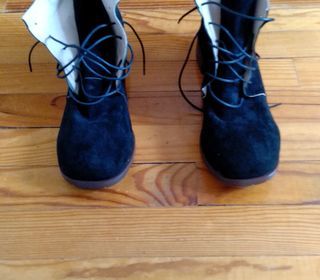 Une paire de chaussure anglaise vintage neuve en cuir noir, jamais portée, pointure 42. Le cuir à l'extérieur est façon daim. La semelle est synthétique.