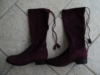 Splendides bottes NEUVES (jamais portées) de la marque originale ANDRE, en cuir retourné (daim, nubuck) ; intérieur cuir aussi. De couleur bordeaux/prune. Lien de serrage à l'arr