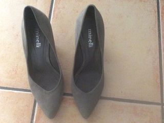 ESCARPINS DAIM GRIS TRES PEU PORTE TALONS 9 CM POINTURE 35 MINELLI