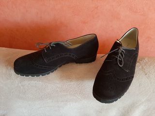 chaussures femme marque Hassia c'est une marque confort tout en cuir, nubuck taille : largeur H et pointure 5 : équivalent à 38 en cuir nubuck couleur marron semelles amovibles