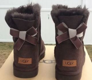 MINI BAILEY (UGC) VENTE 101€ Tige en cuir suède et peau de mouton double face. - N?ud fixe sur la tige arrière. - Biais en nylon. ¨¨¨¨¨POUR DES QUESTIONS, via ce site OU sms