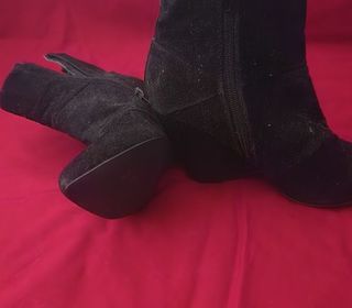 Superbes boots en daim noir BATA, élégantes et confortables. Portées, état d'usage : daim propre, talon stable, intérieur nickel. Style chic et facile à assortir, parfait pour l'