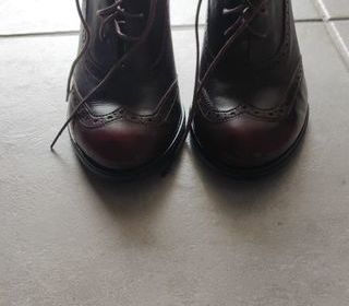 Vends chaussures presque neuves en cuir . Couleur bordeaux . Mises 1 fois . Talon 8 cm . Pointure 38 .