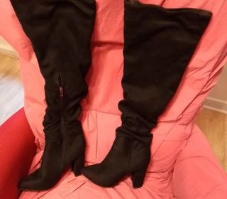 Vends cuissardes noires en daim fermeture éclair hauteur talon 8 cm Très peu portee