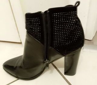 BOTTINES NOIRES FEMME AVEC STRASS AU TALON MARQUE LA BOTTINE SOURIANTE POINTURE 36 TALONS 9 CMS