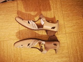 Vend escarpins haut talon avec des brides Neuf. Couleurs dorées brillantes. Prix: 30€. Pointures: 37 Hauteur talon : 12cm Patin : 2cm A venir récupérer.