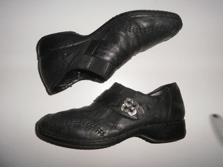 Je vends une paire de chaussures "Rieker", à scratch, en cuir noir. Taille 38.