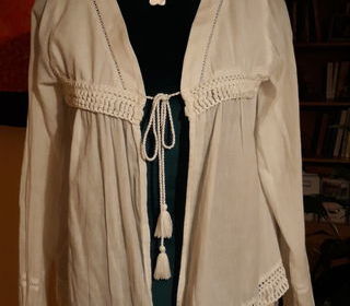 Bonjour, Je vends ce chemisier qui est en très bon état général ; mis a part, un fil coupé dans le dos... (voir photo) ? Particularité : chemisier / gilet ? avec ruban pour