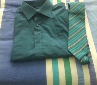 Vend très belle chemise couleur entre bleu et vert t tour du cou 17 43 cm marque tom hagan et la cravate assorti, ou chemise seul 15e et la cravate seul 5 e tbe comme neuf et tr