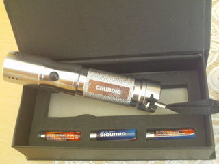 Coffret lampe LED inox Grundig neuf N°922 Beau coffret lampe 9 LED inox Grundig neuf avec 3 piles neuves Lampes de 14 cm de long et 3 cm de diamètre Marqué Grundig sur 4 cm s
