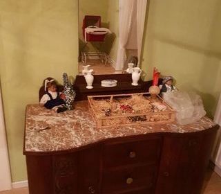 Coiffeuse avec miroir avec lumière led 1 tiroir Miroir pliable En bon état Interrupteur lumière un peu abîmé voir photo mais fonctionne. Remise en mains propres uniquement